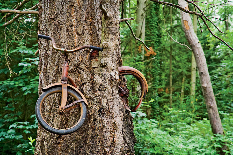 I wonder what happened to the child to left their bike chained to this tree, only to never return. Now the tree has claimed the bike in it’s own way.
